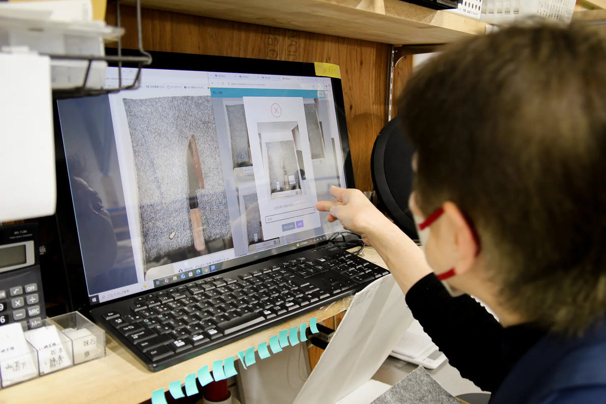 職人が刃の材質や長さ、歪み具合に応じて作業を分担します。独自開発の受注管理システムによって、1本ごとの状態や進捗を徹底管理。ビフォーアフターの写真やLINEでの相談対応など、細部まで気を配ることで、多くのリピーターの信頼を得ています。