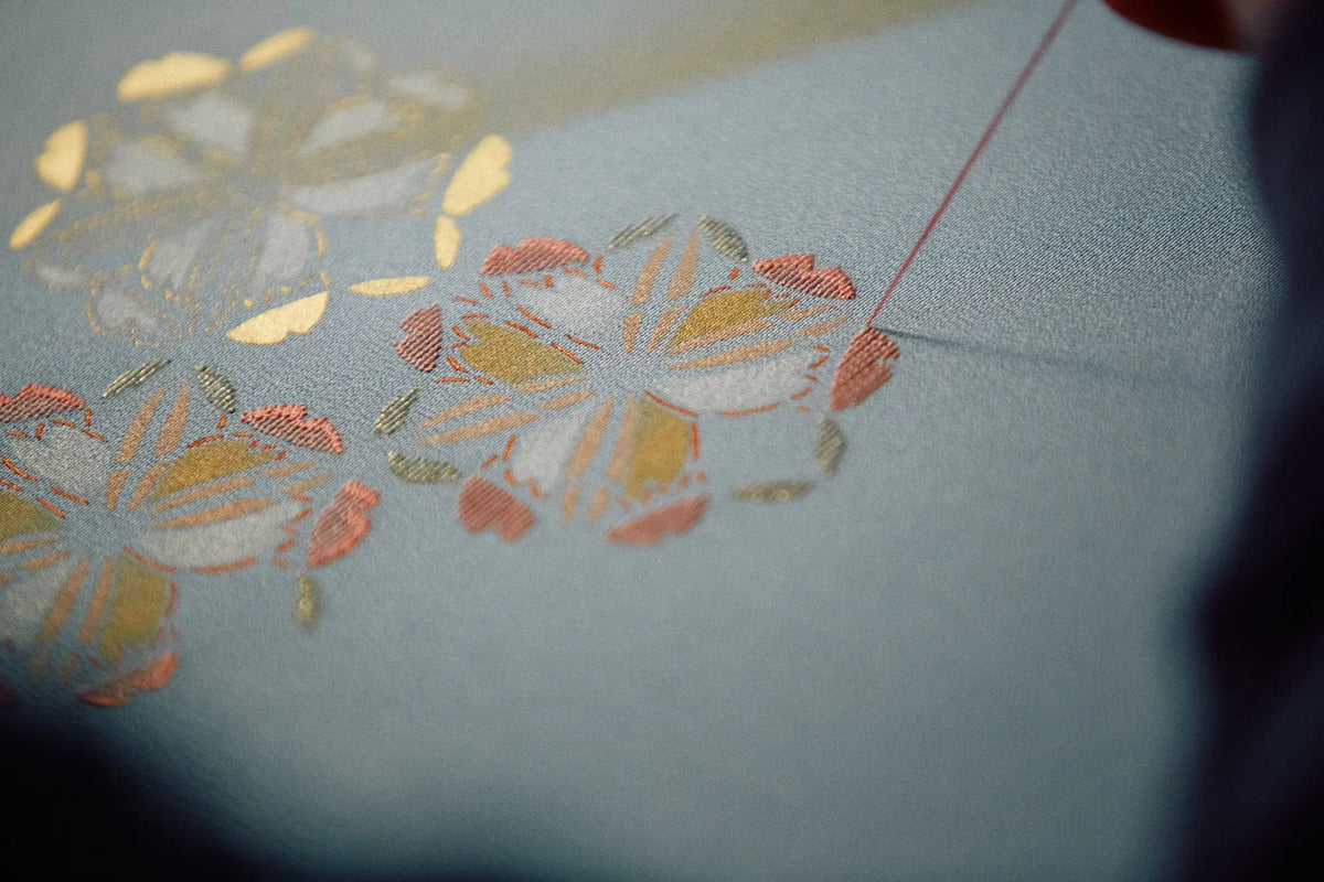 色も刺繍も手作業で、職人たちと相談しながら作っているからこそ、時には「成人式の着物を作って欲しい」というオーダーにも対応。ひとりひとりに寄り添いながら、ほかにはない特別な着物を作り続けています。最近では、実際に製作した着物を使った、アートパネルも販売。インテリアとして「着物を飾る」という新しい取り組みも行っています。