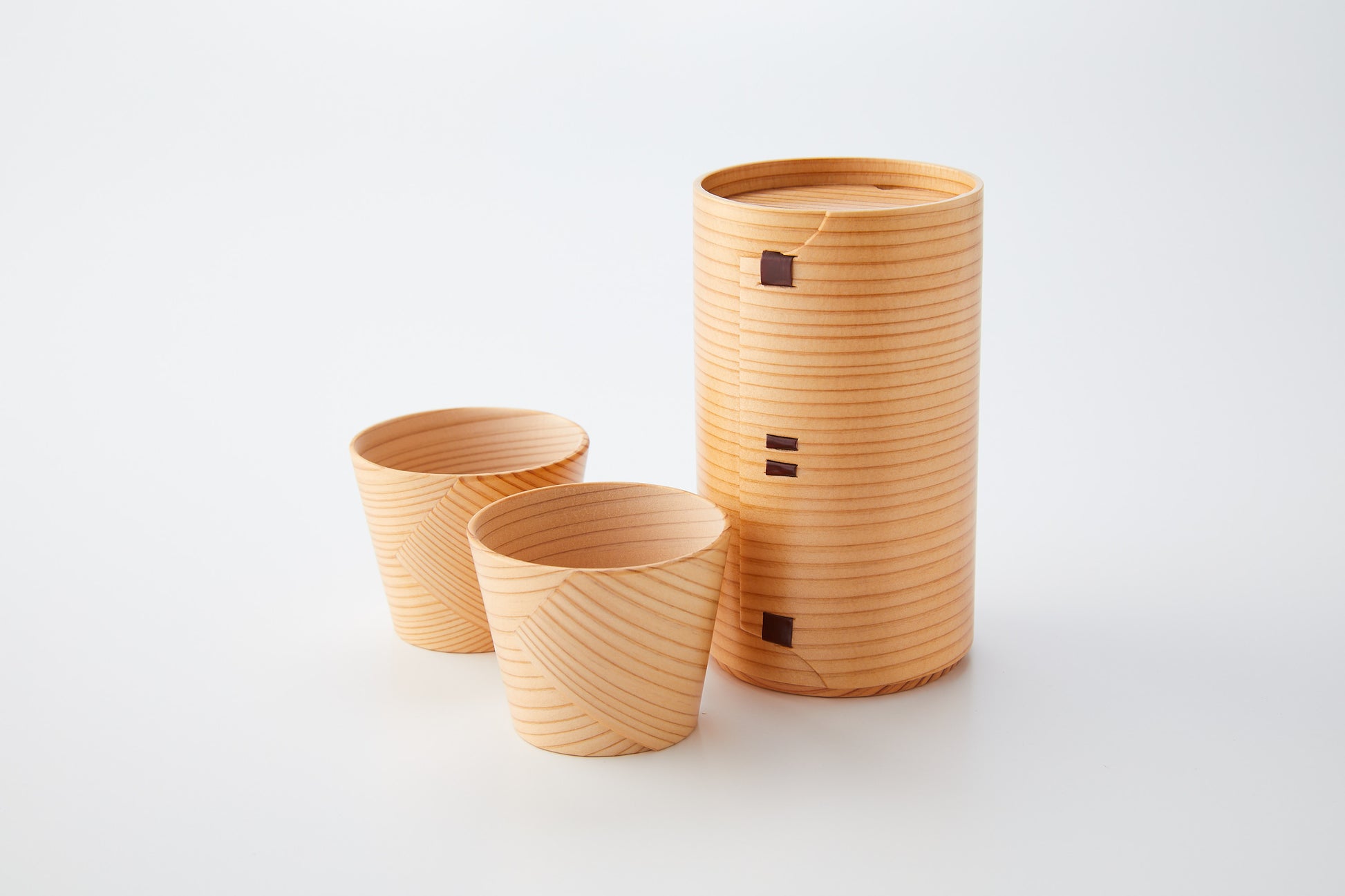 1.優しい木の温もりが感じられる曲げわっぱのぐい飲みセット。