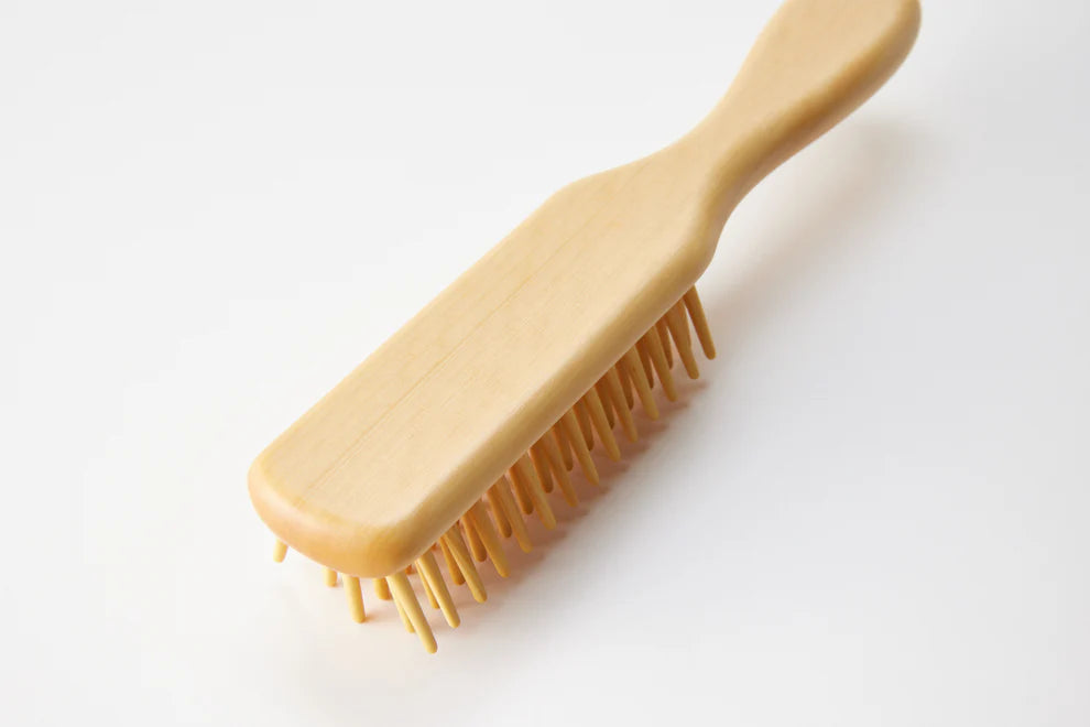 - Handmade using natural wood. Grain, color, and size may vary slightly. Please be aware of this in advance. - If stored in a sealed container due to temperature and humidity, discoloration and mold may occur. Please open the package as soon as possible after arrival. - Please be careful not to place the boxwood brush on the floor with the teeth (pins) facing up as this may cause injury.
