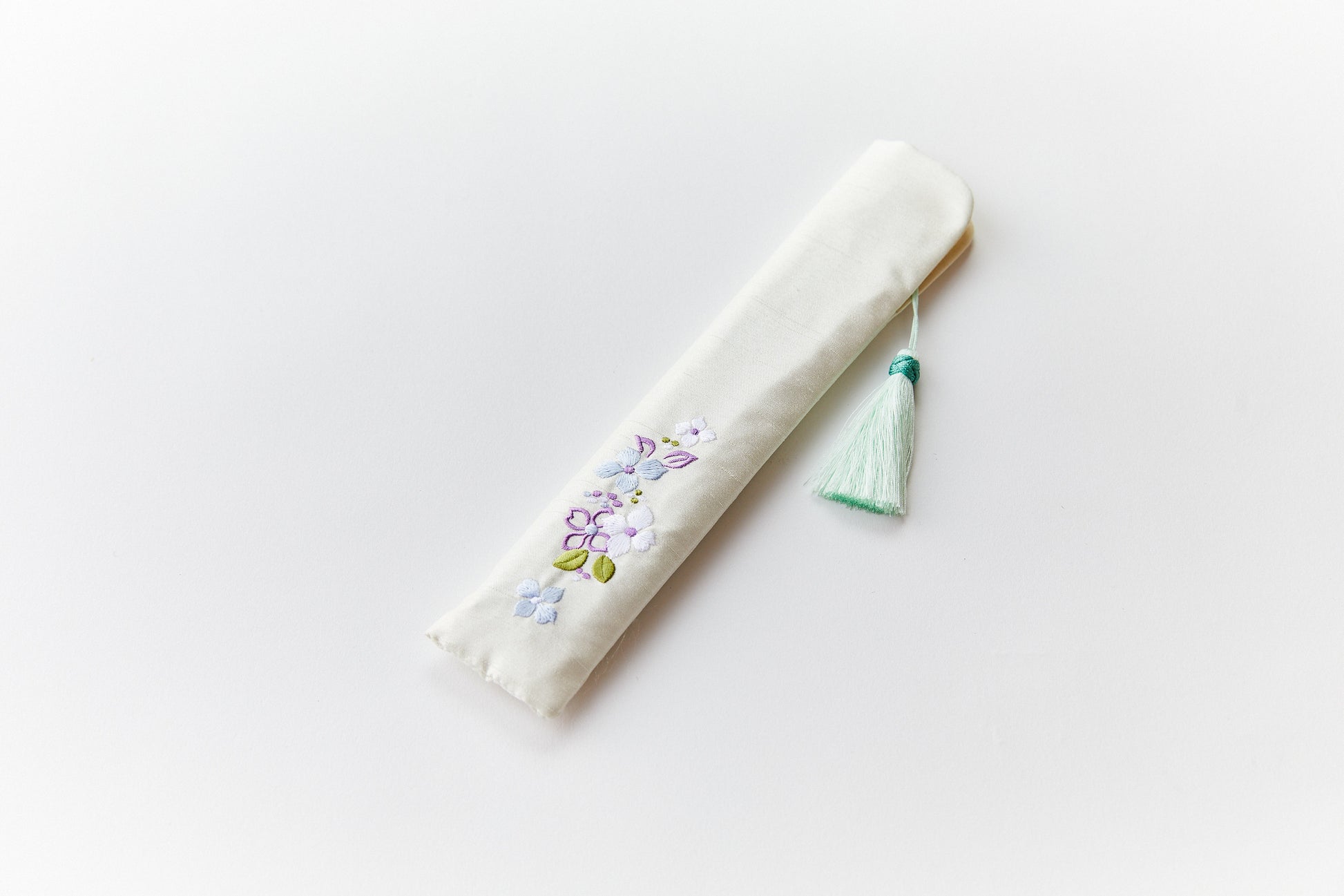 The unique colors, carefully applied by an experienced artist who also works in Kyo-Yuzen, are a true artisanal skill that cannot be reproduced by printing. The craftsmanship of the artisan shines through in this Kyoto fan, which is cool to use and look at when displayed. An embroidered fan bag is also included in the set.