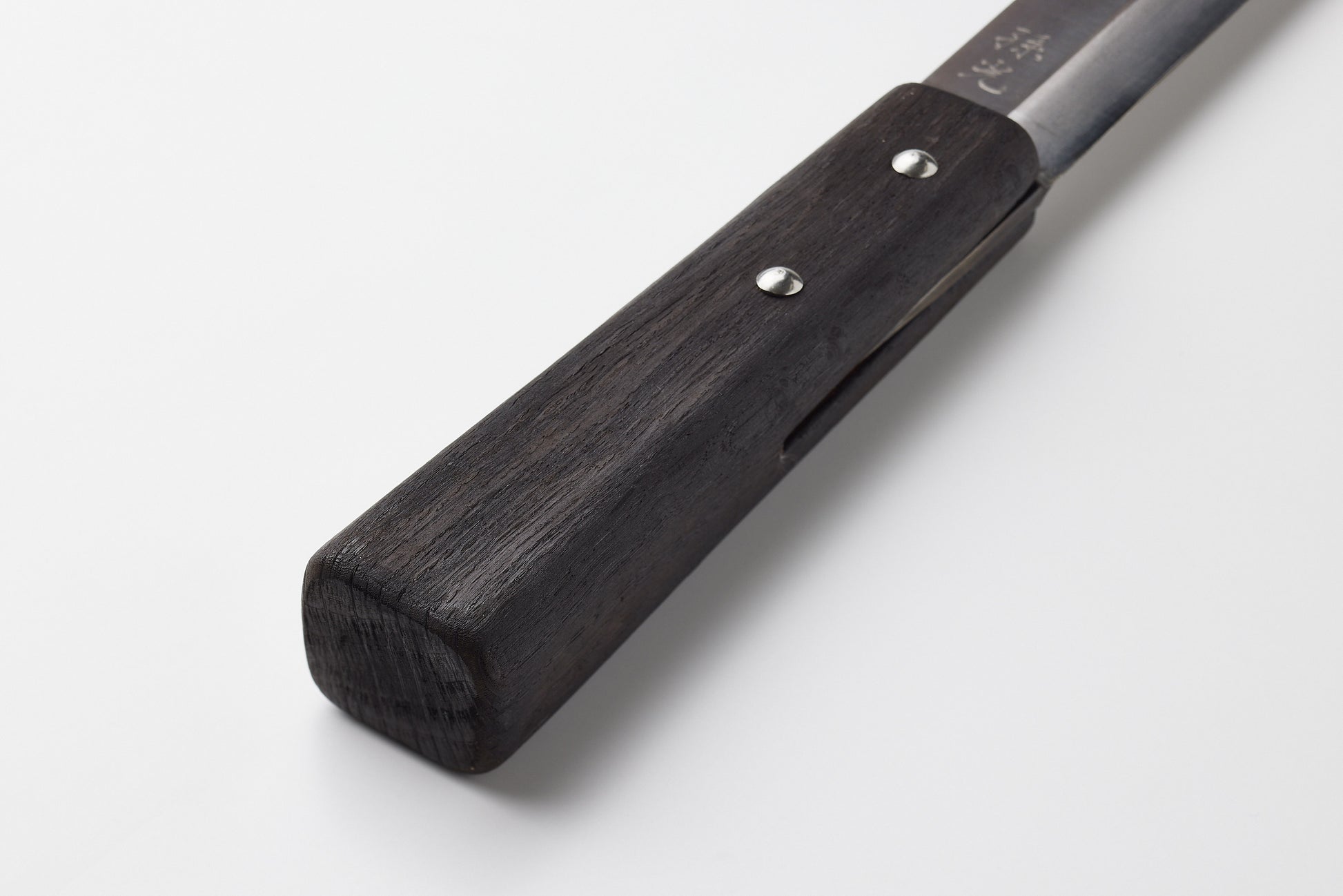 刃:安来鋼青紙2号 地金:SUS410(ステンレス) 柄;焼樫木