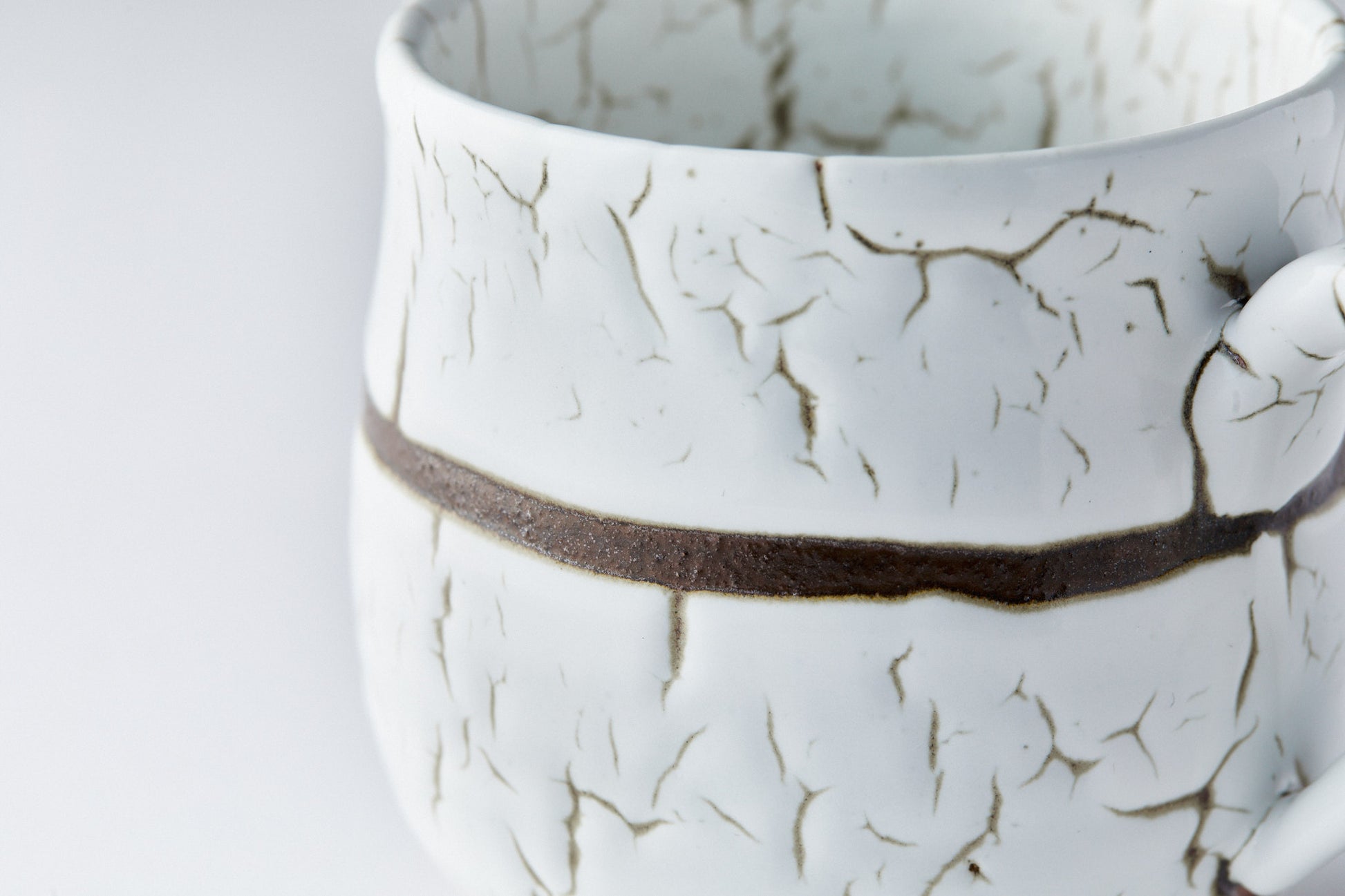 “龙爪梅花皮”的特点是洁白优雅,卷曲的纹路酷似神龙利爪。烘烤过程中出现中线,略有起伏,卷曲的纹路一一不同,是一件独一无二的艺术品,别有情调的马克杯。