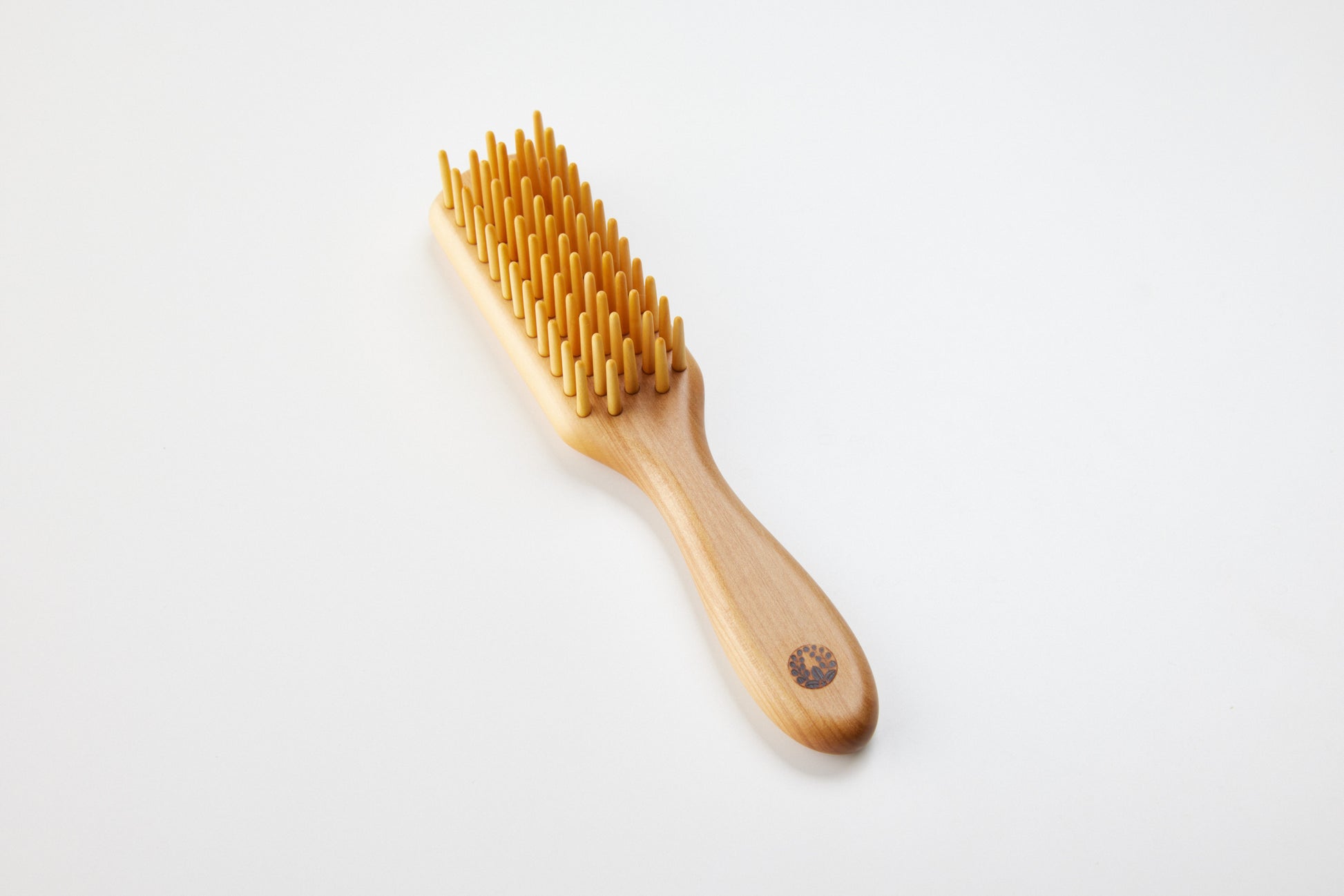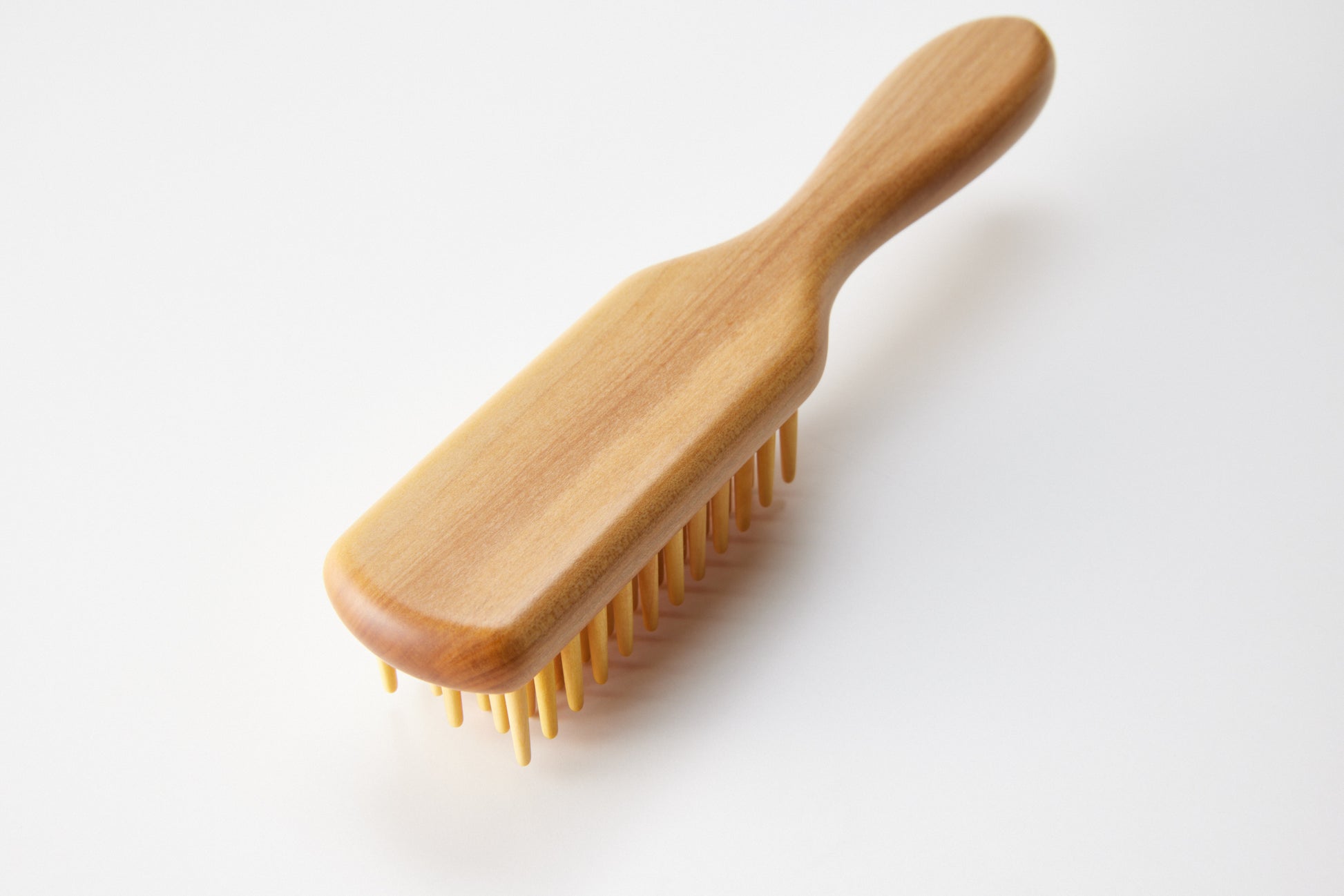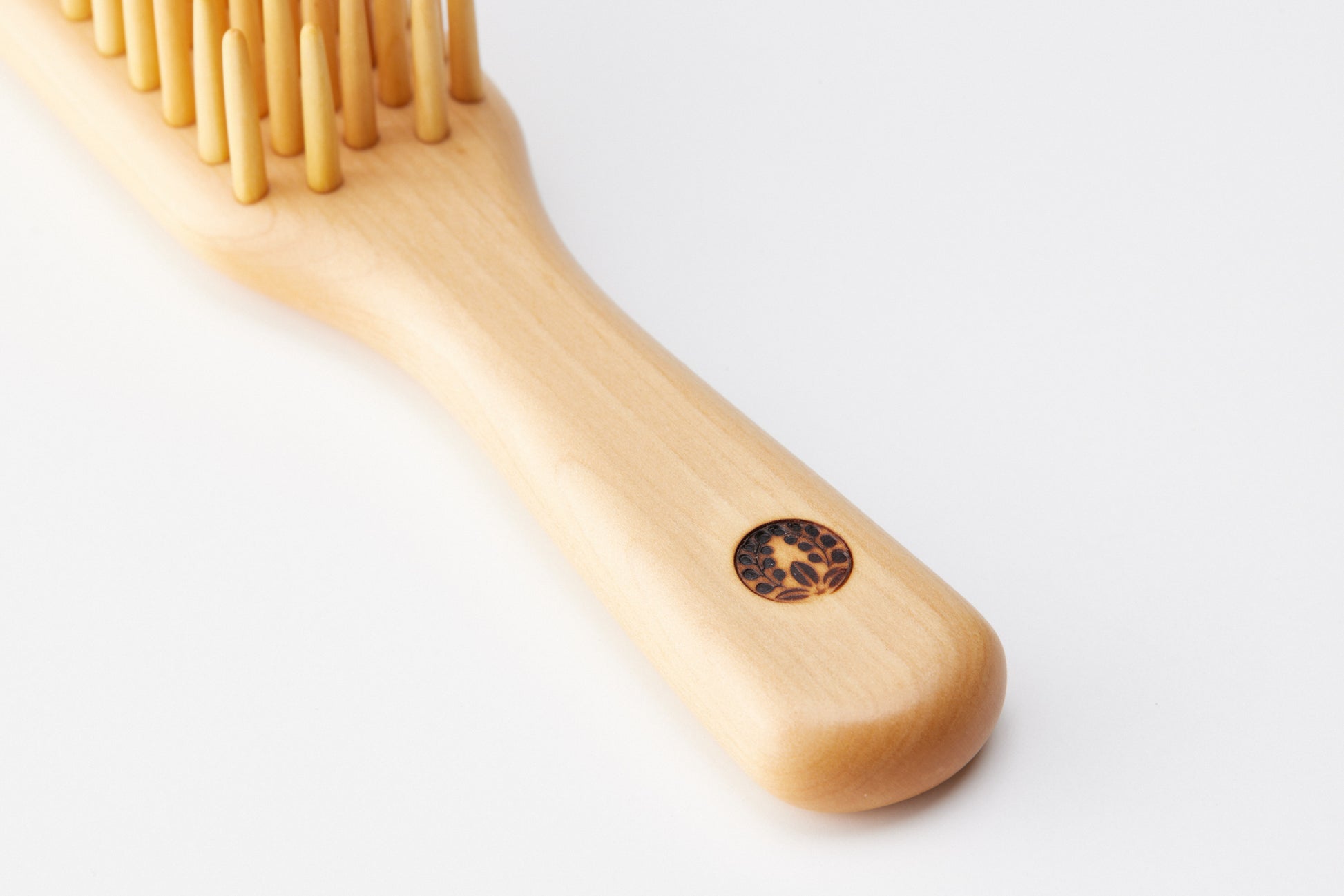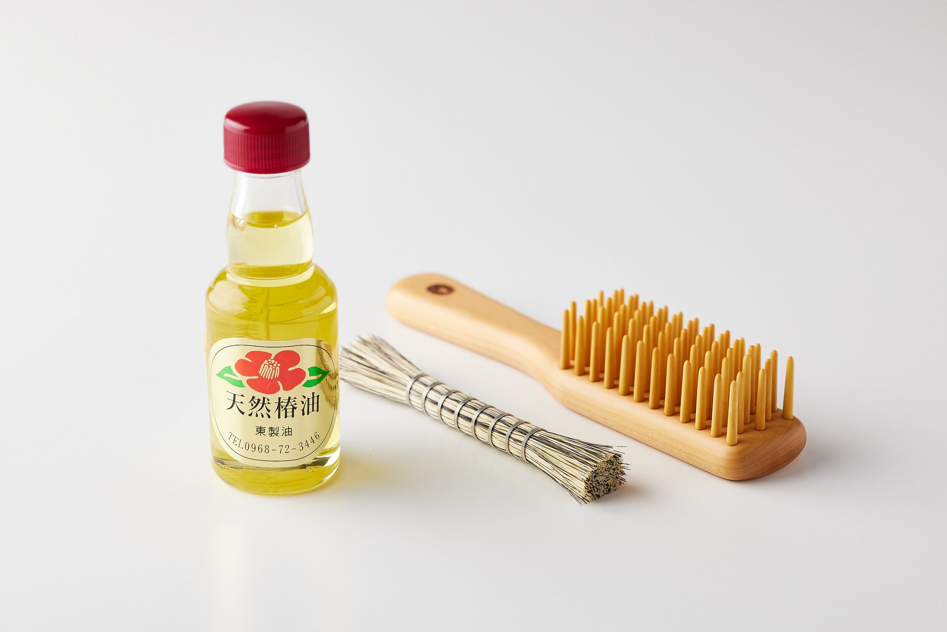 黄杨木梳预先浸泡在山茶油中,每次使用都能让头发保持光泽。使用过程中,山茶油会渗透到头发和头皮上,梳子上的油会逐渐消失。但如果在使用前让山茶油充分渗入头发,就能更有效地赋予头发自然光泽。