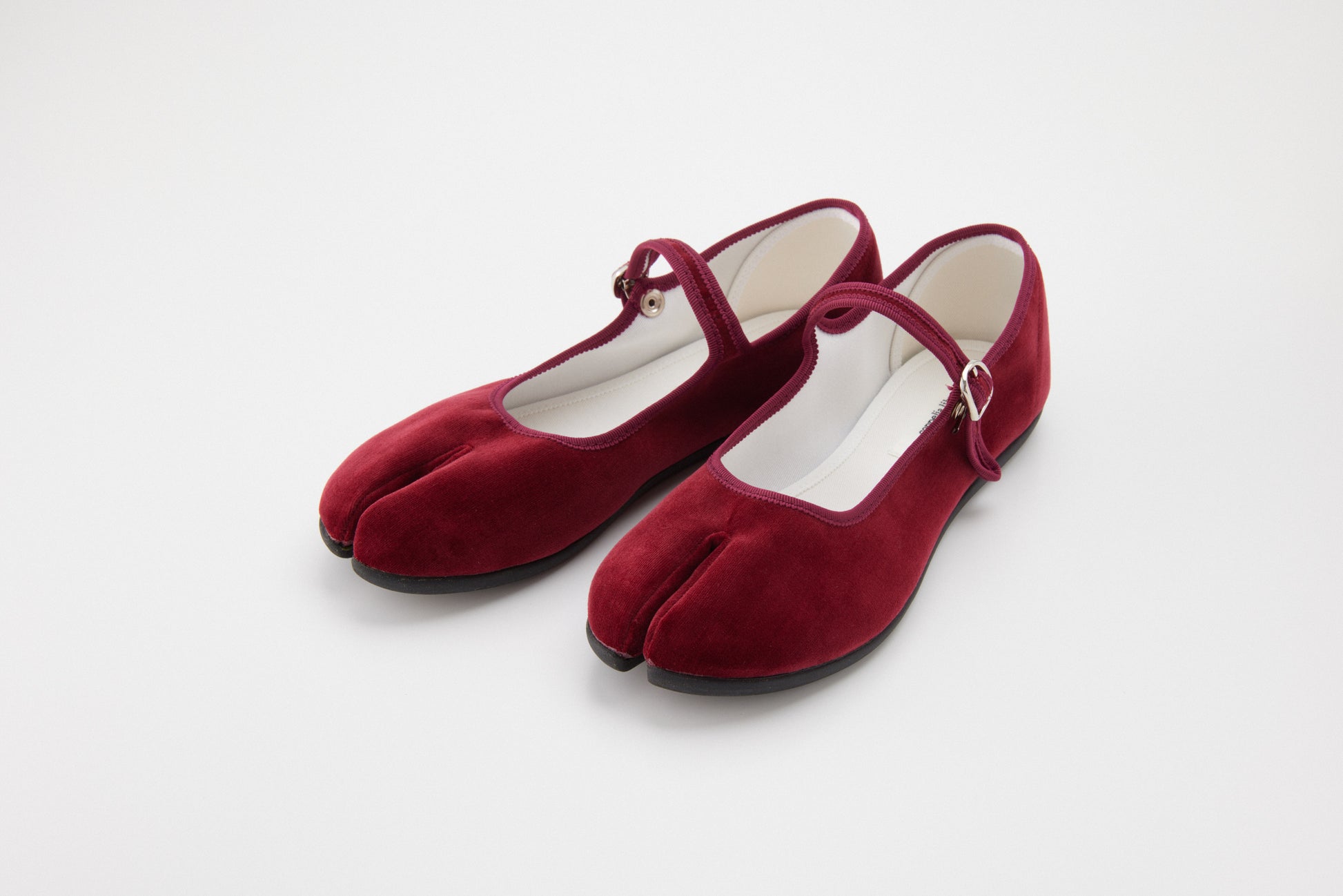 足袋式设计让脚趾自由伸展,不会束缚脚趾,带来整个脚掌紧贴地面的感觉,支撑舒适平衡的行走。面料采用精心编织的平绒,质地柔软,光泽优雅,质感奢华。