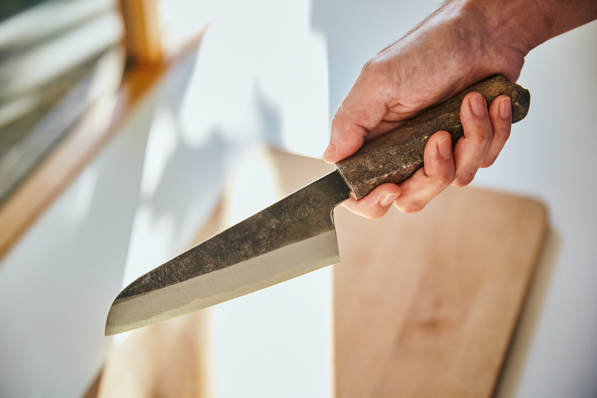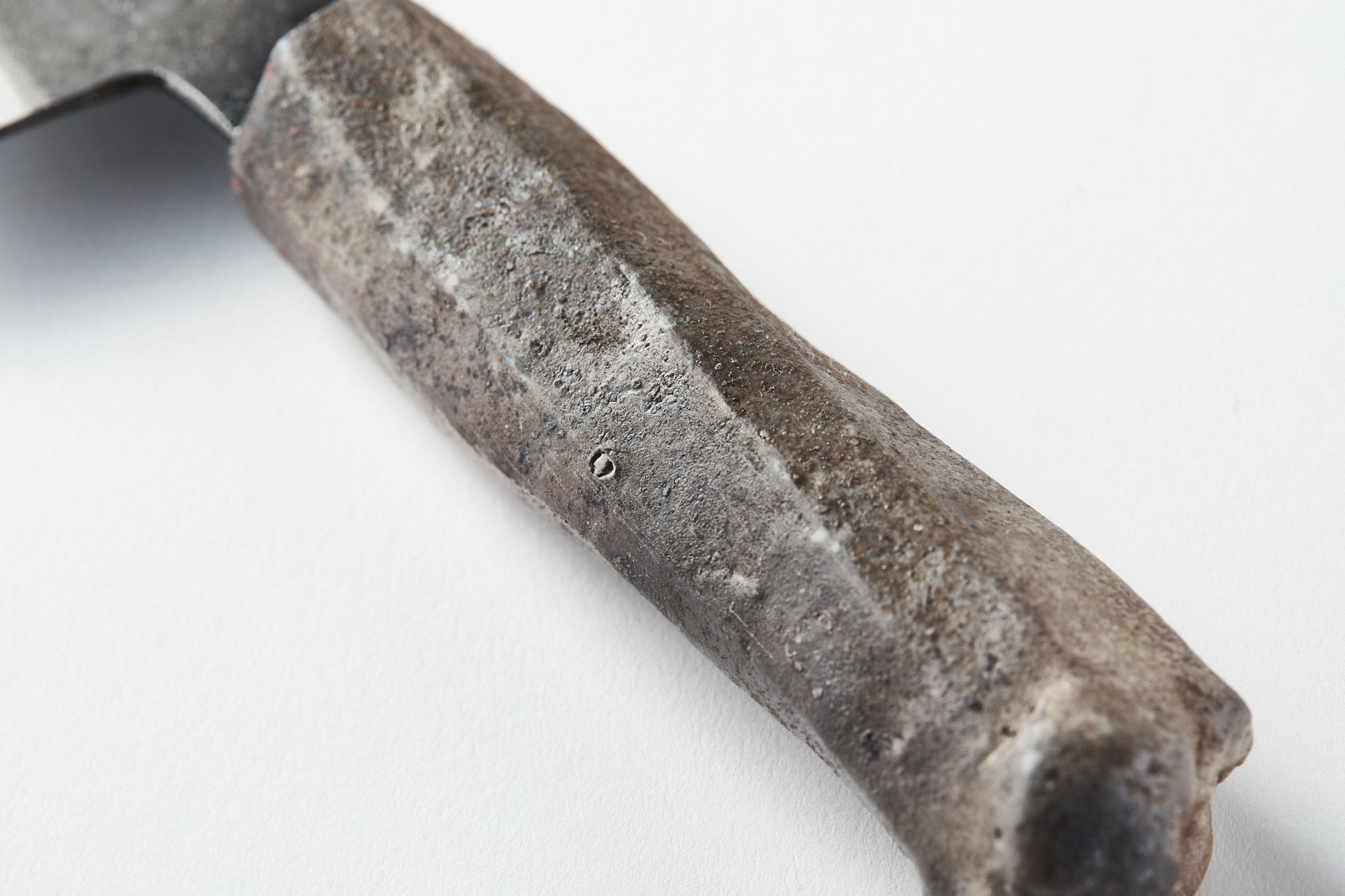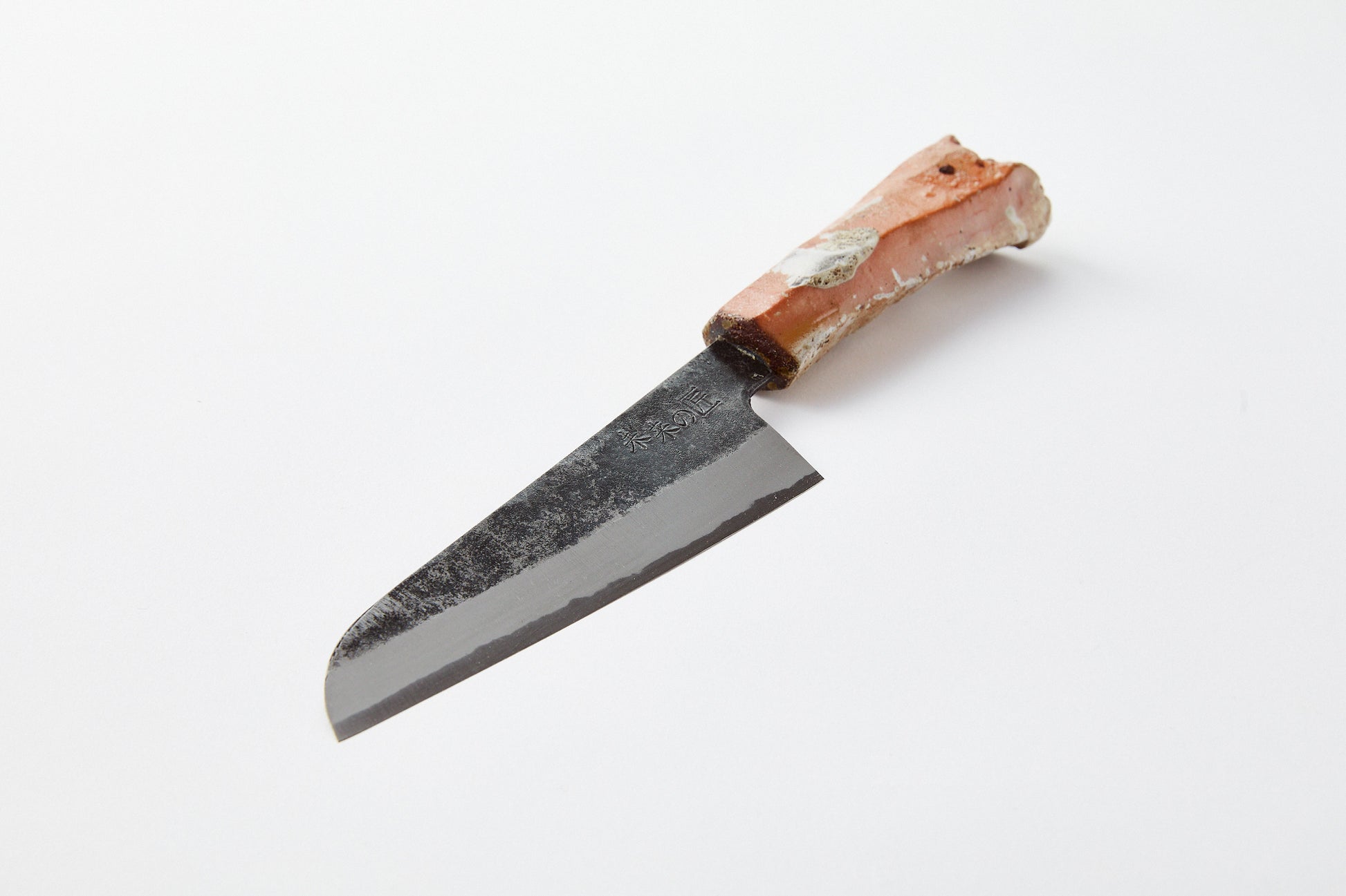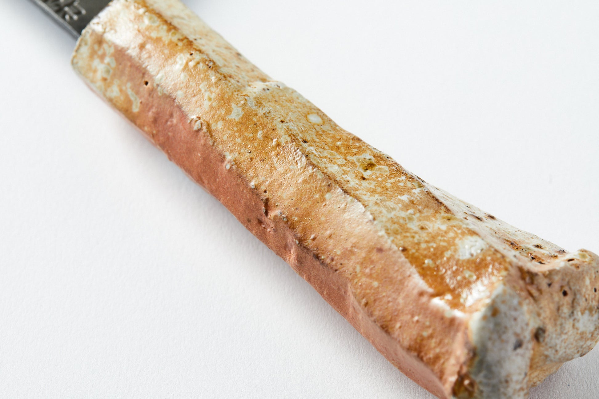 本鍛造で製作された播州三木打刃物と、日本六古窯のひとつに数えられる丹波焼の柄がコラボした、世界にたったひとつの本格包丁「未来の匠Hyogo」。
