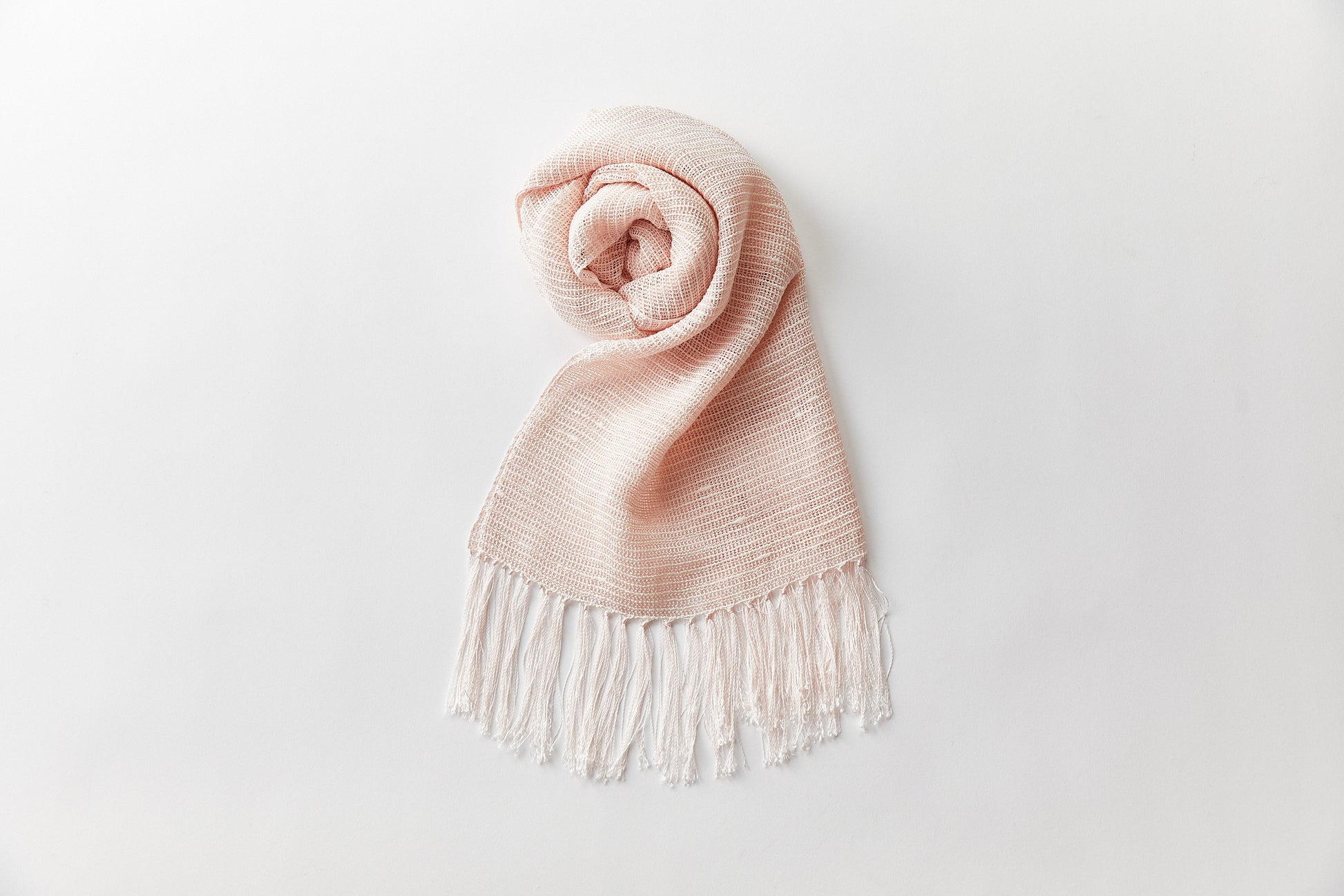 这款披肩是由据说是日本最坚固的纸黑谷和纸制成的纸线与丝线编织而成。 它触感轻盈光滑,因此不粘腻,一年四季都可以使用,从春天、夏天、秋天到初冬。佩戴时享受它与肌肤融为一体的感觉,随着时间的推移,会形成美丽的质感。