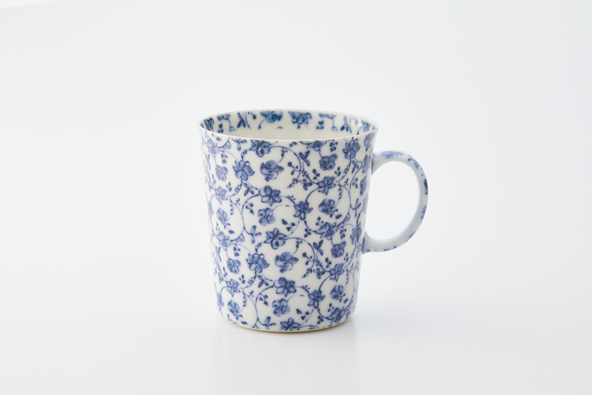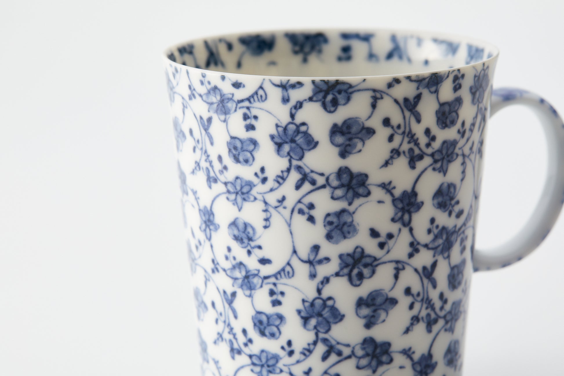 Marunai 陶器 Sometsuke Kiritate 马克杯按钮蔓藤花纹