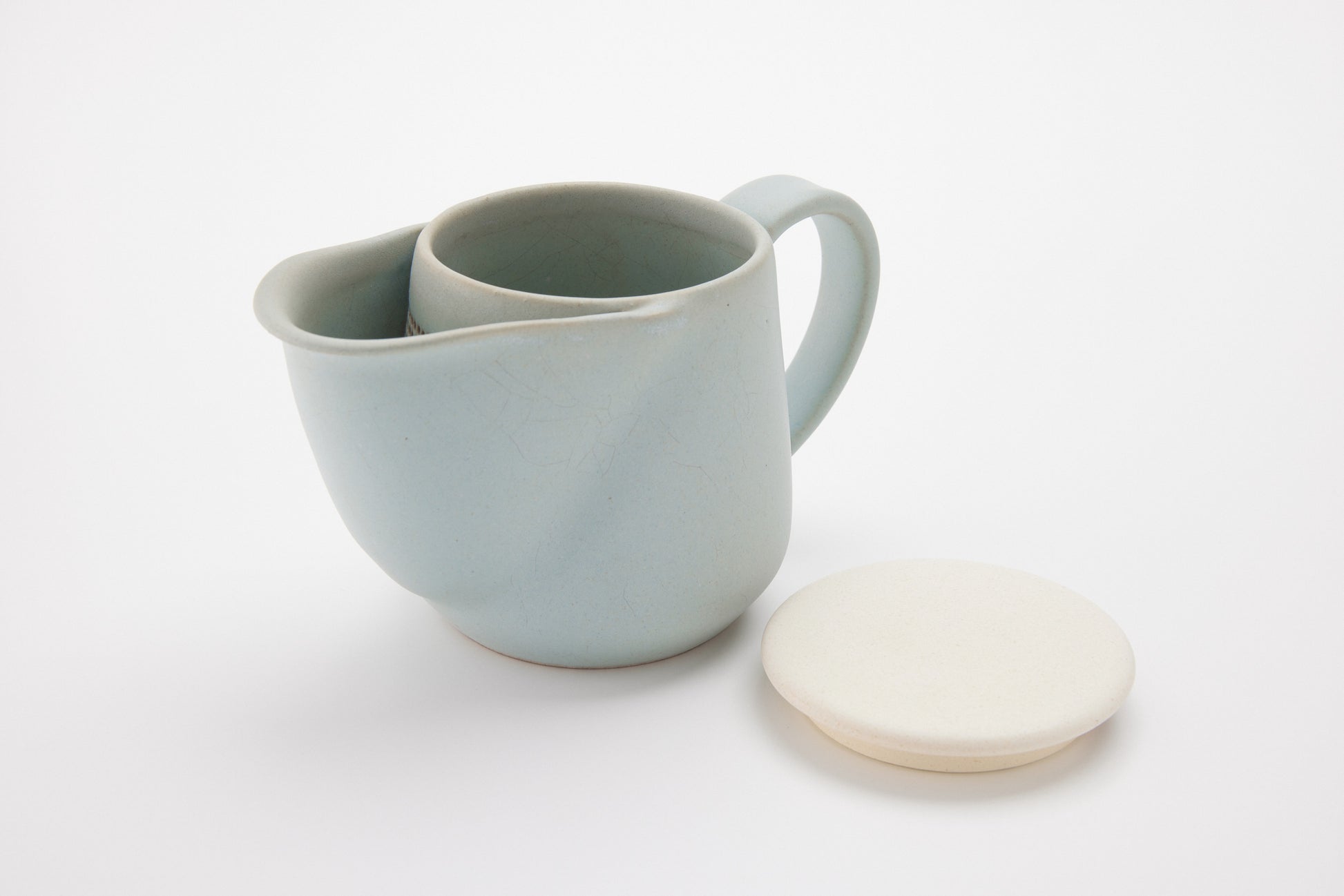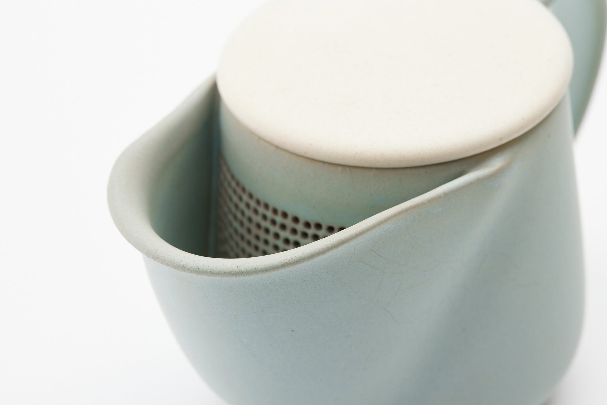 这款手工茶壶拥有独特的壶嘴,壶嘴上精心钻孔,确保倾倒茶水时顺畅无阻,直至最后一滴。其设计让茶叶可以直接倒入茶中,无需滤网,从而充分享受茶的自然风味。这款茶壶有两种颜色可选:哑光白和哑光蓝,堪称兼具实用性和美观性的杰作。