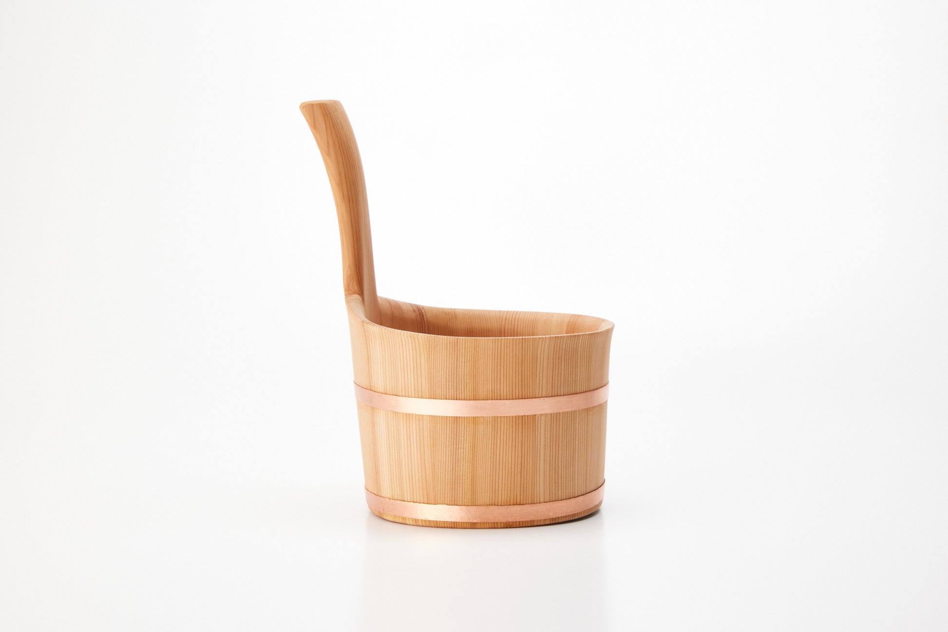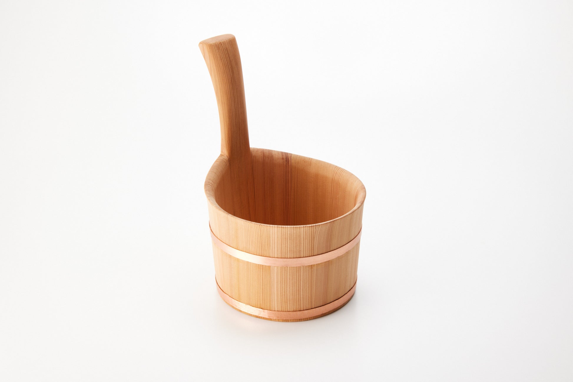 桶足工房秋田的这款单把手浴缸,木质的温暖轻轻地贴在手上。浴缸采用天然秋田杉木制成,秋田杉是日本三大美林之一,如今已十分稀有。
